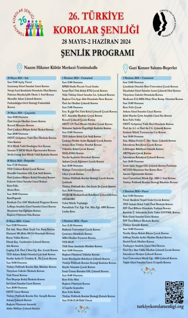 Şenliğe katkı sağlayan kuruluşlar içerisinde Ankara Büyükşehir Belediyesi de bulunuyor. Gerek toplumsal gerek akademik anlamda koroların büyük bir heyecan ve coşkuyla yıl boyunca beklediği Türkiye Korolar Şenliği'nde bu yıl 28 Mayıs-2 Haziran tarihlerinde Yenimahalle’deki Nazım Hikmet Kültür Merkezi’nde ve 1-2 Haziran tarihlerinde Beşevler’de bulunan Gazi Konser Salonu’nda 120 koro sahne alacak. Şenlik programına www.turkiyekorolarsenligi.org sayfasından ulaşılabiliyor.