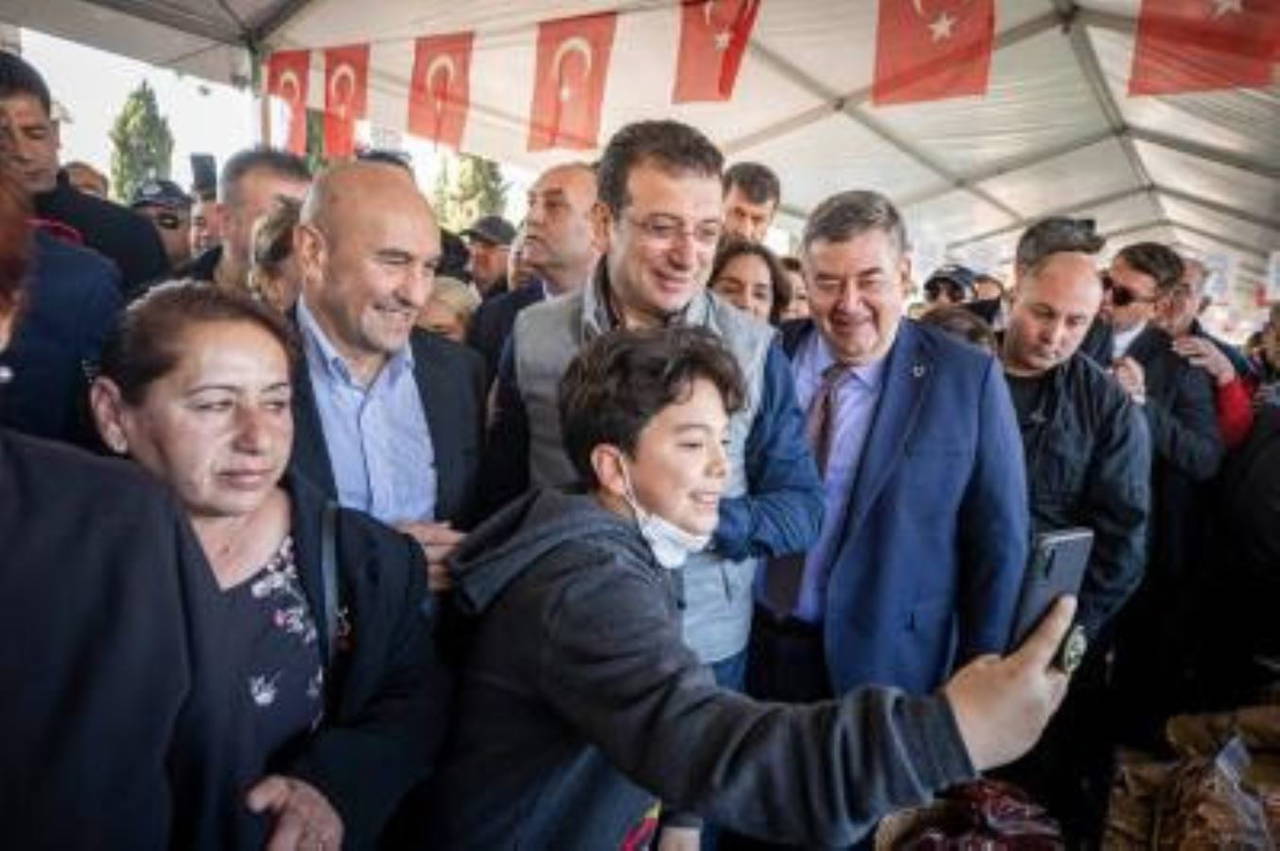 İzmir Büyükşehir Belediye Başkanı Tunç Soyer, İstanbul Büyükşehir Belediye Başkanı Ekrem İmamoğlu ve Çeşme Belediye Başkanı Ekrem Oran (soldan sağa)