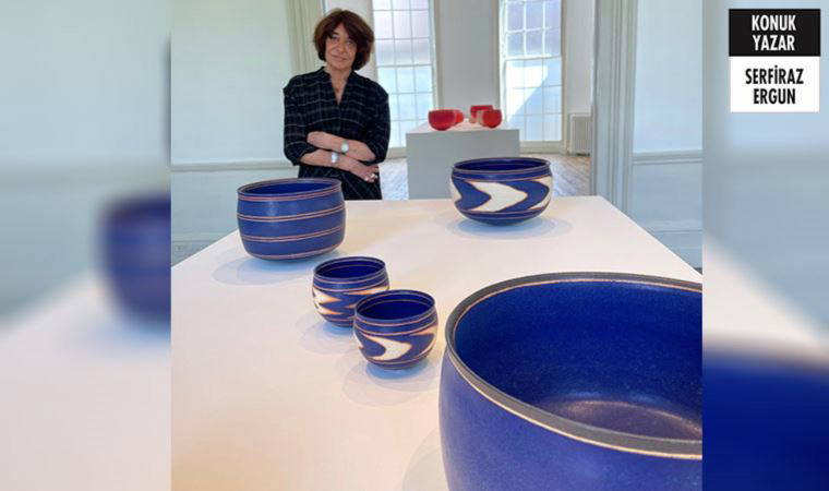 Londra’da Fitzroy Square’e daha önce hiç gitmiş miydim hatırlamıyorum. İçinde koskoca bir parkı da olan bir meydan burası. Her bina yenilenmiş, balkonlarından çiçekler sarkıyor, vaktiyle Bernard Shaw ve Virginia Woolf’un oturduğu apartmanlar ve büyükelçilikler meydana bakıyor. Bu meydanda babadan galerici Tristan Hoare’nın galerisinde Alev Ebüzziya’nın ünlü çanaklarının sergisi açıldı. Tristan Hoare, “Uzun zamandır Londra’da solo sergi açmayan Alev Ebüzziya Siesbye’nin sergisini açmak benim için bir onurdur; üstelik de tüm pandemi süresinin çalışmaları bunlar” diyor. Alev Ebüzziya ise “Pandemiden en az etkilenenler bence sanatçılar oldu, çünkü onlar yalnız çalışmaya çok alışkın” diyor. “Ben alışığım ama sevdiklerime sarılamamak, seyahat edememek beni etkiledi” diye de ekliyor.