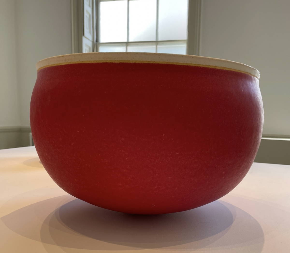 Alev Ebüzziya’nın bir sergiyi hazırlaması için en az bir buçuk yıla ihtiyacı var. Bir sergi de en az 12-15 parça işle açılıyor. Bu sergi kobalt mavisi-lacivert ile mercan-kiremit kırmızısının birbirlerine meydan okuması ve düelloya daveti gibi olmuş. Alev bu adını taktığım renklere hemen itiraz edecek çünkü onları istediği tona getirebilmek için sırlarla az çatışmıyor, her renge de ayrı isim takıyor. Renklerine ve formlarına nasıl karar veriyorsun diye soruyorum, “Tamamen bir ihtiyaç” diyor. “Mavileri yaptığımda herkes çini rengi, Ege’nin mavisi dedi. Hiç alakası yok, zor bir dönemimdi, mavi rahatlatıcı bir renktir, iyi gelir, canım mavi çekti. Peki, kırmızıları neden canın çekti diye soracaksın. O da kışkırtıcı bir renktir, onu da canım çekti. Bir ara siyahı da canım çekmişti, iki sene oturup sır denemeleri yaptım, istediğim siyahı buldum sonunda. Önce küçük küçük deniyorsun, iyi olmazsa, neden iyi olmadığının peşine düşüyorsun, biraz artırıyorsun, biraz eksiltiyorsun. Onlarca siyah çıkıyor ama sen bir tanesini beğeniyorsun.”