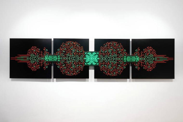 Sergide sıkça görülen “0” ve “1” rakamları grafik tasarım çıkışlı Sonel’in varlık ve devinimle olan ilişkisinden geliyor. Bu iki rakam dijital dünyanın temellerini oluşturuyor. Hatta giriş katındaki eserlerden biri sadece 0 ve 1’lerden, yani sadece makinelerin “okuyabildiği” sayılardan oluşuyor.