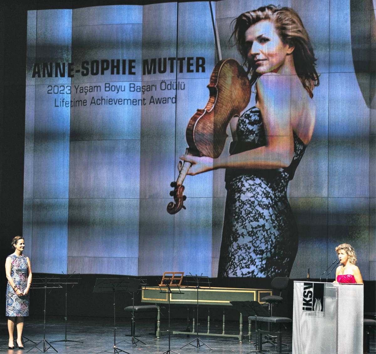 51. İstanbul Müzik Festivali’nin “Yaşam Boyu Başarı Ödülü”, 13 Haziran Salı akşamı Atatürk Kültür Merkezi Opera Sahnesi’nde 47 yıldır dünyanın tüm büyük salonlarında konser veren, Previn, Chin, Penderecki gibi çağının en önemli bestecilerinin eser ithaf ettiği efsane kemancı Anne-Sophie Mutter’e sunuldu. Törenin ardından, Mutter ve bursiyerlerinden oluşan yaylı sazlar topluluğu Mutter’s Virtuosi’nin verdiği konser, dinleyiciler arasında çok sayıda sanatçının da olduğu herkesin nefesini kesti.