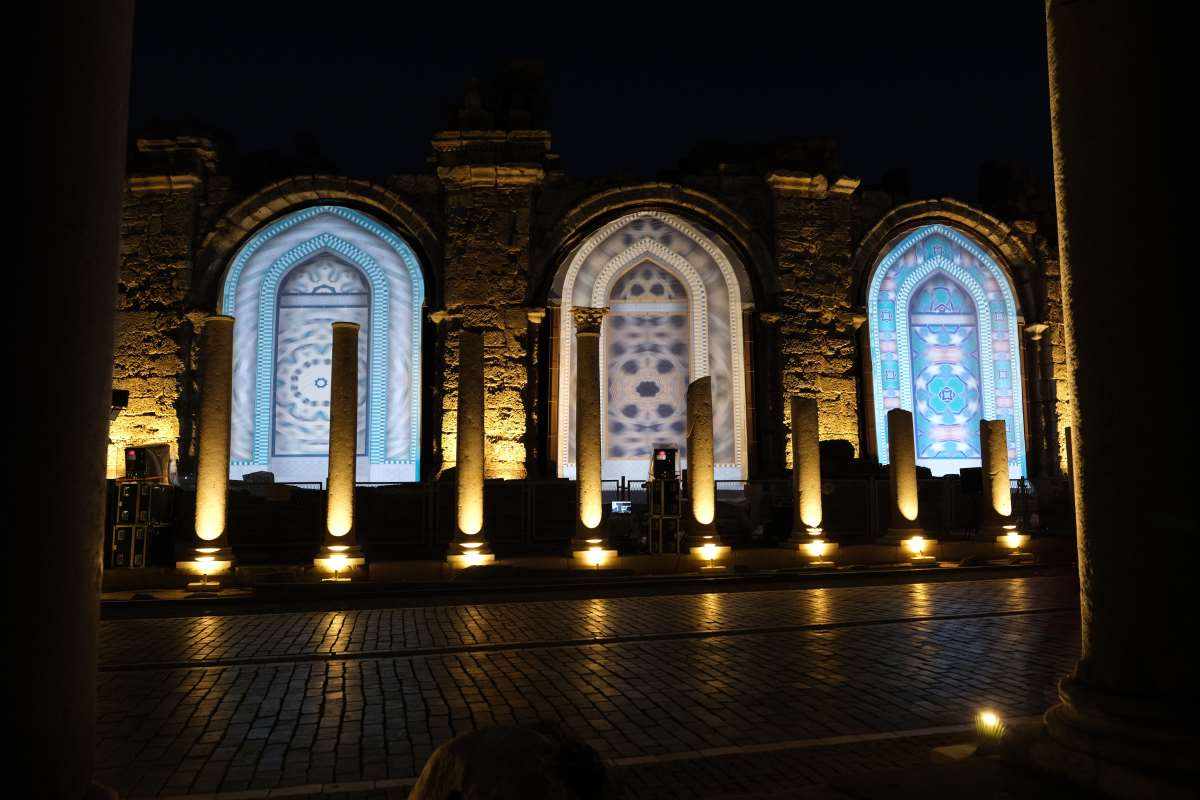 Hakan Yılmaz ve Seyd Ahmet'in dünyanın farklı yerlerinde ve dönemlerinde üretilmiş çini örneklerinin kolajlanmasıyla hazırladıkları "Gate of Eternity/Sonsuzluk Kapıları" isimli NFT sergisi, festival kapsamında Side Antik Tiyatro'da sergileniyor.