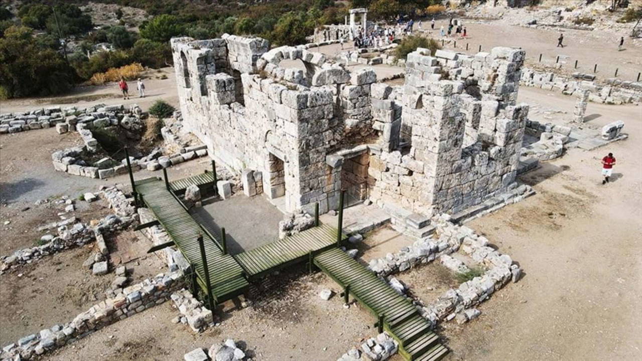 Tarihi alandaki 2 bin 400 yıllık kaya mezarları, 5 bin kişilik tiyatro, bazilika, hamam, agora ve kutsal alanlar ile 1300 yıllık mozaikler ziyaretçilerin ilgisini çekiyor.