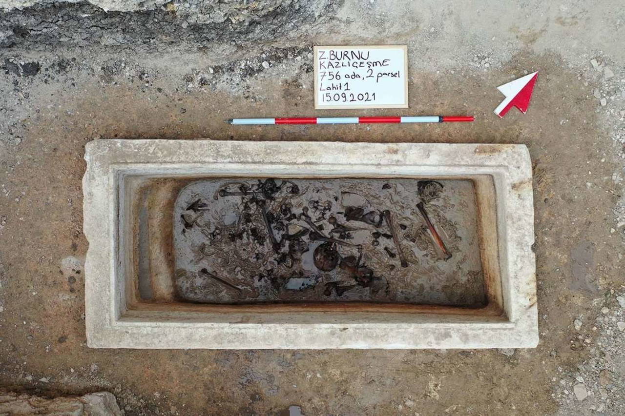 TÜBİTAK incelemelerine göre lahit mezarda bulunan 2 iskeletin birinin bin 750 yıllık diğerinin ise bin 775 yıllık olduğunu belirtti. Lahit mezardaki kişilerin 4. ve 5. yüzyıl tarihleri arasında yaşadıkları, kadının 30-40, erkeğin ise 40-50 yaşlarında olduğu belirtilirken erkeğin kaburgasında bir kırık ve romatizmal hastalığı olduğu raporlandı.