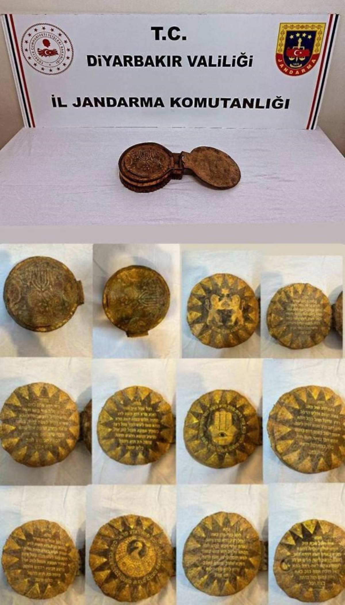Diyarbakır İl Jandarma Komutanlığı Bağlar İlçe Jandarma Komutanlığı tarafından yapılan titiz çalışmalar sonucunda, şüpheli şahısların araçlarında gerçekleştirilen kontrollerde 1400 yıllık İbranice altın yazmalı dini motifli deri bir kitap ele geçirildi. Diyarbakır Valiliği tarafından yapılan açıklamada, Bağlar ilçesi Batıkarakoç Mahallesinde bir araçla getirileceği ve satılacağı bilgisinin alınması üzerine gerçekleştirilen operasyonda 4 şüpheli şahsın yakalandığı belirtildi.
