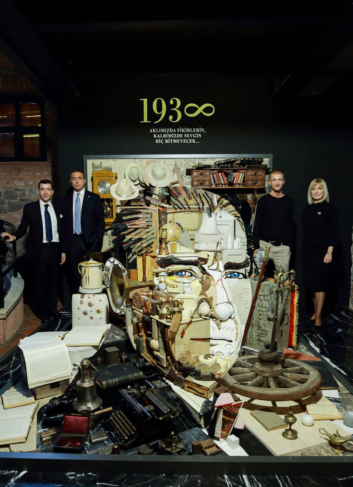 Anamorfoz, görsel sanatlarda kullanılan bir teknik: Belirli bir noktadan ya da bir prizma aracılığıyla, baktığınızda görebildiğiniz ve anlayabildiğiniz, ama onun dışında baktığınızda sadece çeşitli eşya ve cisimleri gördüğünüz bir eser! Hani körlerin fili tanımlaması gibi biri kuyruğunu tutmuş, biri kulağını, kim neyi tuttuysa onu anlatmış, filin bütününü görememişler! Çekyalı heykeltıraş Patrick Prosko, eserlerini bu yöntemle yapıyor. Mermer işi yapan Temmer Marble’ın sahibi iş insanı Rüstem Çetinkaya kendisinden bir Atatürk portresi yapmasını isteyince önce siyasetle ilgisi olmadığını ve siyasi kişiler üzerine çalışmak istemediğini söylüyor ama Atatürk’ün kimliğini araştırmaya başlayınca onun bir siyasetçi değil, yüzyılın en önemli devrimcisi, yok olmuş bir ülkeyi yeniden yaratan bir lider, bir önder, bir komutan, bir bilim insanı, bir ulusun Ata’sı olduğunu anlayınca öyle bir şevkle koyuluyor ki işe sonunda harika bir eser çıkıyor ortaya. Atatürk’ün kullandığı eşyaları ve önem verdiği değerleri simgeleyen 93 temada tam 539 parça seçiliyor, antikacılardan. Rüstem Çetinkaya için en zoru da bu olmuş galiba! Bunların tarihi eser olmadığı tek tek belgeleniyor ve hepsi paketlenip Çekya’ya sanatçının atölyesine gönderiliyor. Çalışma orada tamamlanıyor. Bu aslında biraz da deli işi.