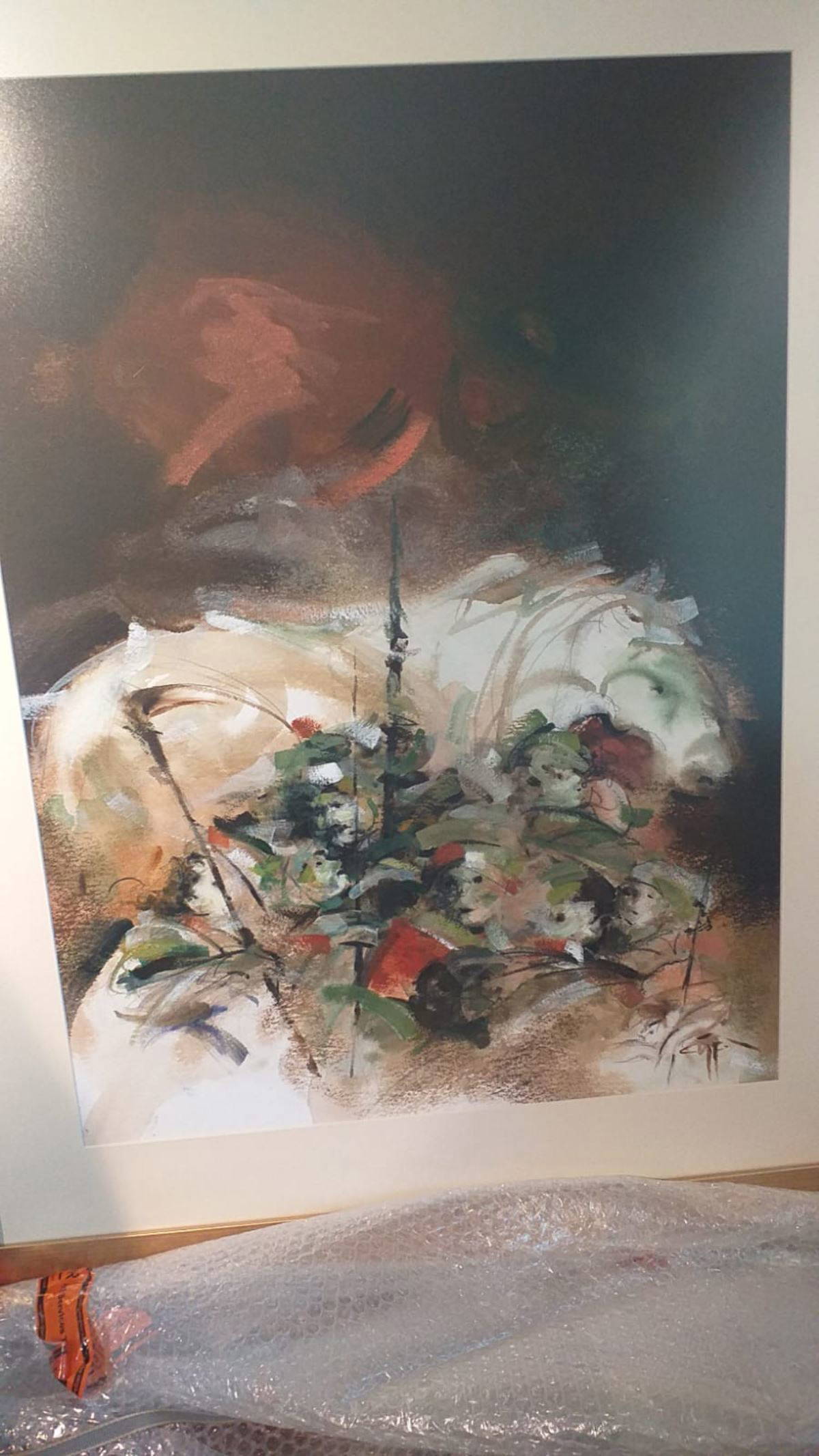 Yapıtlarında insan yüzlerine, atlara ve kuşlara yer veren sanatçı, korkuyu ve umudu bir arada anlatıyor aslında. Mavi tonlarında uçan kuşlarda umudu, atlarda özgürlüğü görüyoruz. İnsanların yüzündeki korku ise bu savaş kolay kazanılmadı diyor adeta.