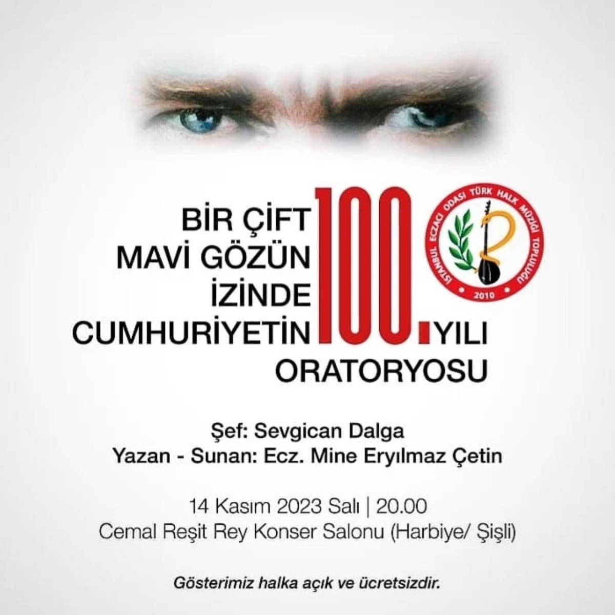 Cemal Reşit Rey Konser Salonu'nda 14 Kasım 2023 saat 20.00'da gerçekleşecek olan konser "Bir Çift Mavi Gözün İzinde Cumhuriyetin 100. Yılı Orotoryosu" ismiyle sahnelenecek.