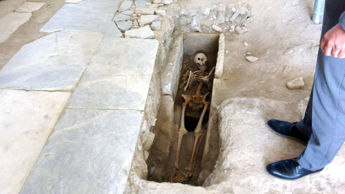 "Bir bunun aslında bir su kanalı olabileceğini düşünüyorduk ama ekip arkadaşlarımızın da istekleri ile açtığımızda buranın bir mezar gömüsü olduğunu fark ettik. Antropolog hocalarımızın incelemesi sonucunda gömünün bir kadın gömüsü olduğunu 34-38 yaşları arasında bir kadın mezarı olduğu saptandı. Aslında kiliselerin içine kadın gömüsü koymak çok sık rastlanan bir durum değil. Muhtemelen bu kadın kiliseye ciddi miktarda bağış yapan bir kadın olmalıydı ya da bir bürokratın eşi. O yüzden Kadıkalesi'ndeki kilisenin giriş bölümüne gömüsü gerçekleştirilmiş."