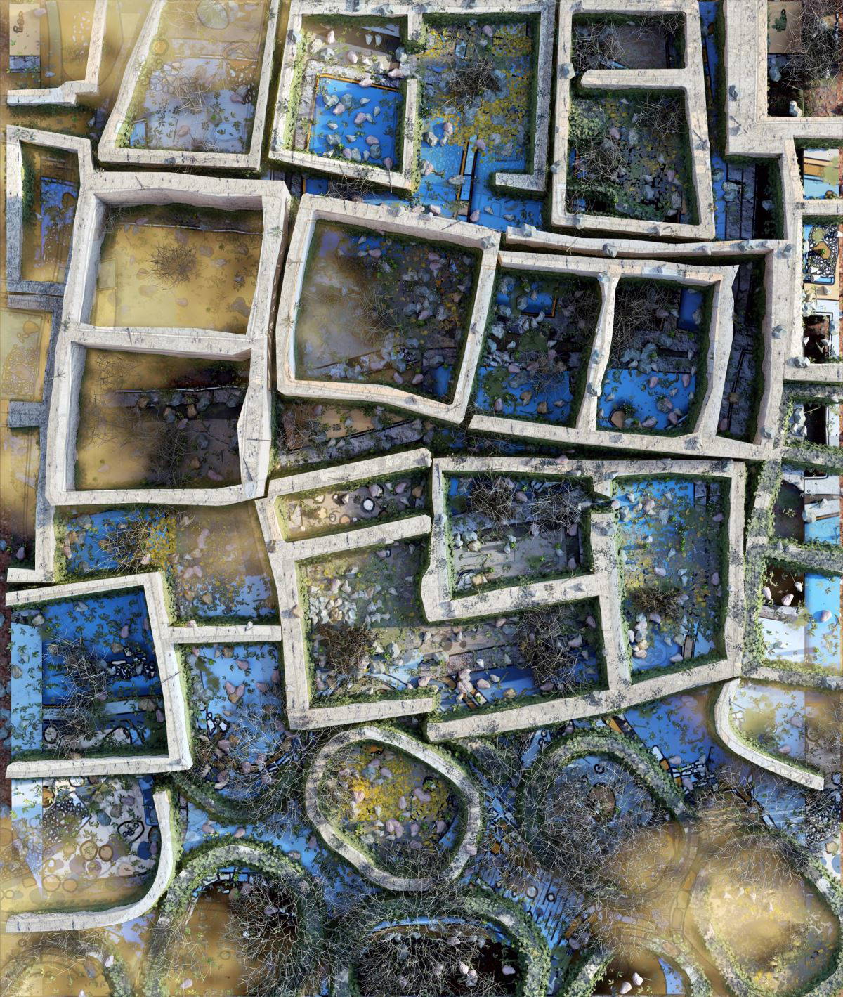 Tarihi Hüsrev Kethüda hamamaının odalarını gezmeye başlıyoruz. Her odada farklı bir sanatçının farklı bir teknik kullandığı işi karşılıyor bizi. Fotoğraf sanatçısı Murat Germen zemine yerleştirdiği kazı alanı fotoğrafının üzerine ahşap bir kitaplık koyduğu “Kopma” adlı işiyle katılmış sergiye. İngiltere’de yaşayan Özgül Aslan ise Aşıklı’dan ilhamla sarı pigment kullanarak bir beden formundaki işini yatırmış kendisine ayrılan odada ve adını da “Tozdan Töze” koymuş. Yeni teknolojilerin de yer aldığı sergide Artırılmış Gerçeklik uygulamasını kullana Ahmet Rüstem Ekici ve Hakan Sorar’ın işleri bambaşka bir deneyim sunarken, girişte ziyaretçileri karşılayan Anita Taylor imzalı dev çizimler çağlar öncesinden güçlü bir duygu aktaırmı yapıyor. Tek tek her işi anlatmanın da çok gereği yok aslında, kendiniz gezip keşfetseniz daha güzel.