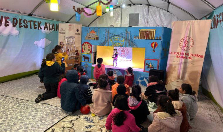 Gaziantep’in Nurdağı ve İslahiye ilçeleri, Kahramanmaraş ve Malatya’da kurulan geçici konutlarda yaşayan çocuklara özel hazırlanan kukla gösterileri çocuklar tarafından büyük bir ilgiyle izlendi. Gösteri sonunda çocuklara boyama kitapları hediye edildi.