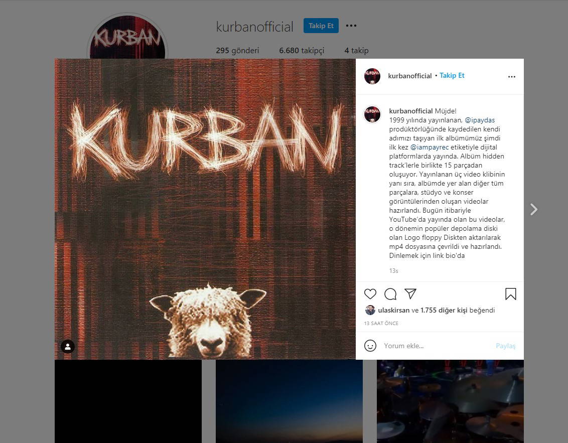 Kurban 1995 yılında Outside adı ile kuruldu. 1997 yılında ise grubun ismini Kurban olarak değiştirdiler. Aynı yıl Roxy Müzik Yarışması'na katılarak 3. oldular. 1999 yılının ocak ayında ilk albümleri olan "Kurban"ı piyasaya sürdüler. 1999 yılında Metallica'nın Ali Sami Yen Stadyumu'nda verdikleri konserde alt grup olarak sahneye çıktılar.
