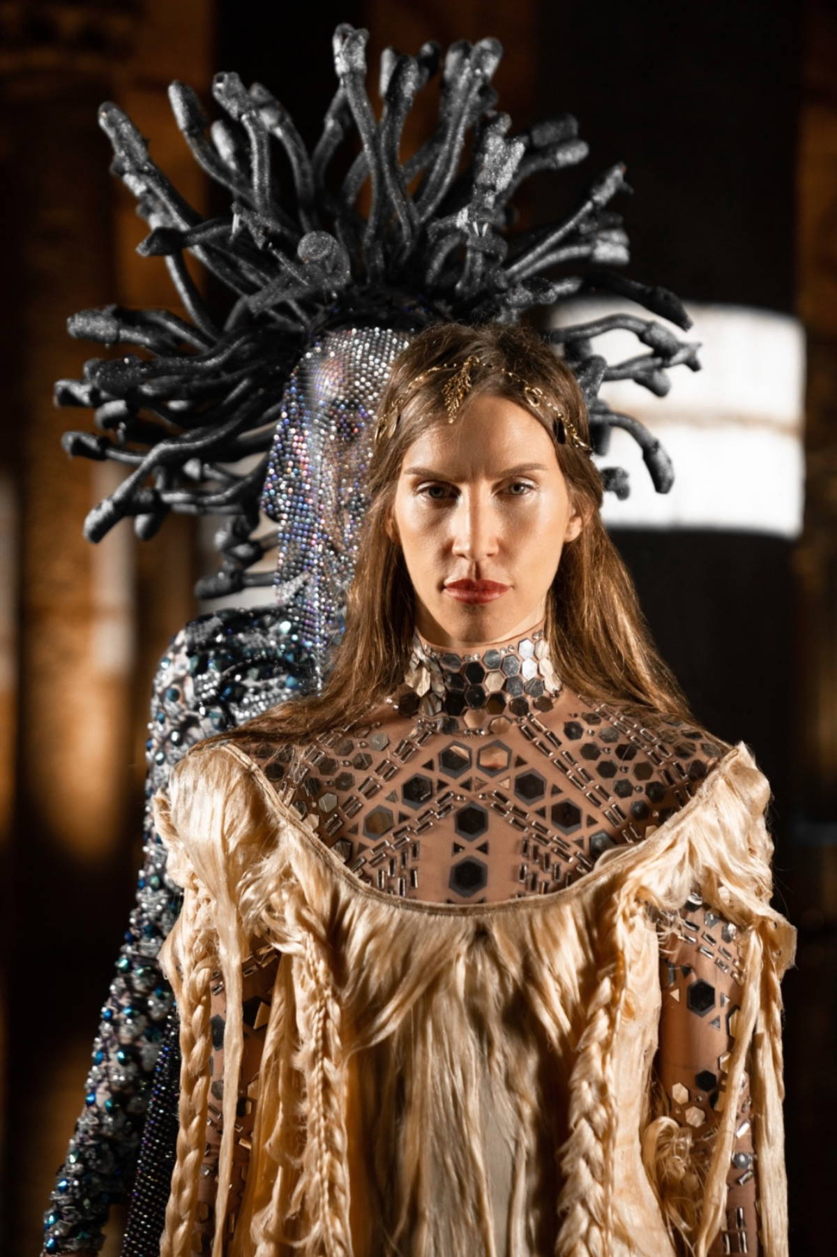 Cankeş, sarnıcın sularına ve esnek hareketlere uyum sağlaması için mayo kumaşından tasarladığı kostümleri; başlık, tulum, iç tayt, eldiven ve çorap olmak üzere beş parçadan oluşturmuş, özel yılan deseni baskısı ve el işlemesi ile de tamamlamış.