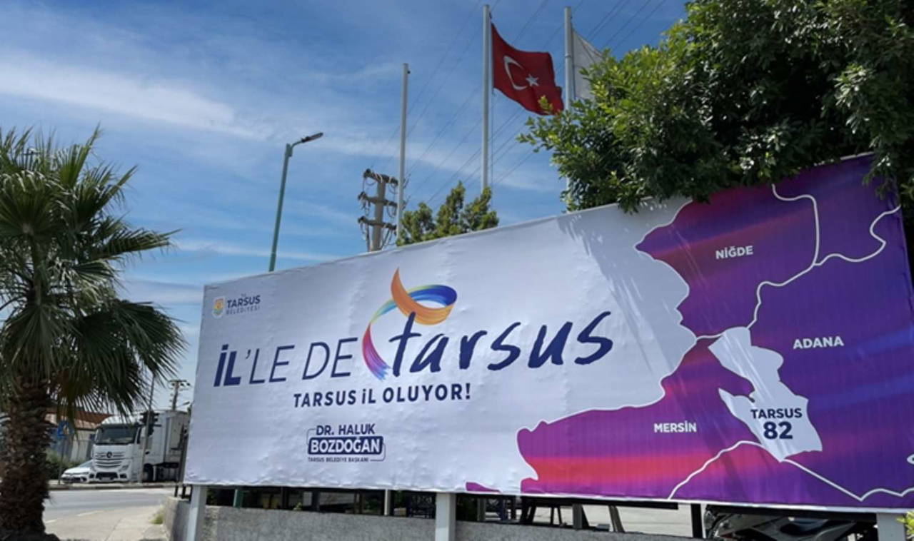 Bu kapsamda belediye tarafından Türkiye'deki il sayısının 100'e çıkacağı yönünde oluşan görüşlerin ardından ilçe girişine "Tarsus il oluyor", "İlimize hoş geldiniz" tabelaları asıldı.