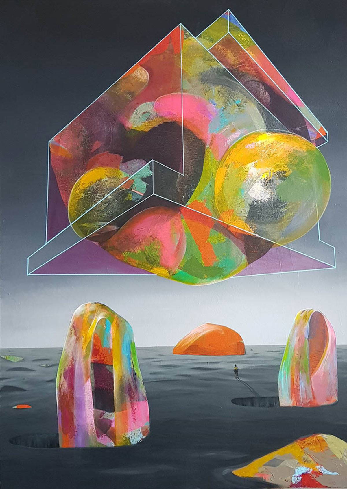 Bu mekânların içerisinde biriken boşluğu okumadan, mekânları çevreleyen dış dünyanın anlaşılamayacağı iddiasını savunur. Söz konusu çalışmalarda üzeri renk, leke ve dokuyla giydirilmiş formlar; bireyin korkularını, sevinçlerini, heyecanlarını, obsesyonlarını, duygu durumlarının tümünü yapısal uzantılarıyla görünür kılmaya çalışıyor.