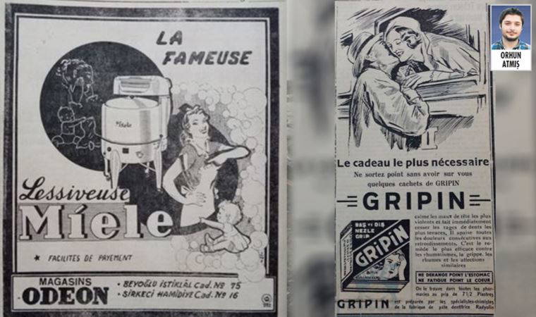 Sergiye gelecek olursak, 100 yıllık bir süreç içinde insanlar tarafından tüketilen reklamları görüyoruz. Şimdilerde olmayan şarap ve içki firmalarının, ilaçların, teknolojinin ilerlemesiyle kullanımdan kalkan ev aletlerinin, günümüzde hâlâ yaşayan şirketlerin, bugün Diyanet İşleri’ne devredilmiş olan ve kent belleğinde önemli bir yeri bulunan tarihi Bomonti Bira Fabrikası’nın ve tabii ki bankaların reklamları... Bunların arasında Cumhuriyet gazetesinin ilk yıllarında Fransızca basılan ekinde bulunan reklamlar sergiye bizim için ayrı bir anlam katıyor. Yanı sıra Notre-Dame de Sion’un ilk yıllarından fotoğraflar ve öğrencilerin üniformalarından örnekler, Osmanlı ve Türkiye Cumhuriyeti’yle Fransa arasındaki ilişkileri anlatan video gösterimleri de sergide yerini alıyor. Osmanlı’dan kalan ve üzerinde üç farklı dil (Osmanlıca, Fransızca ve Ermenice) yer alan fatura örnekleri de bulunuyor.