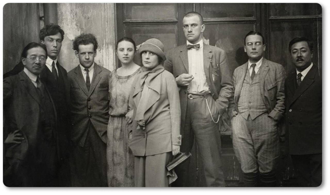Boris Pasternak (soldan ikinci), Lilya Brik-Sergei Eisenstein (soldan üçüncü), Vladimir Mayakovsky (ortada) / 1924)