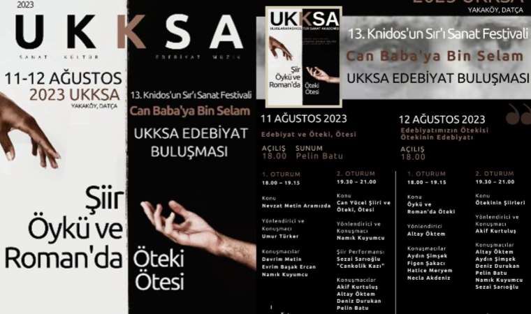 Uluslararası Knidos Kültür Sanat Akademisi’nde (UKKSA), bu yıl 13.sü düzenlenen Knidos'un Sır'ı Sanat Festivali, “Can Baba'ya Bin Selam” etkinliği 11-12 Ağustos 2023 tarihlerinde “Edebiyat Buluşması” üst başlığı ile sanatçılara ve sanatseverlere ev sahipliği yapacak. "Edebiyat ve Öteki" teması ile sanatseverler usta kalemlerin birikimlerini dinleyecek, şiirin, romanın ve öykünün atmosferindeki ötekinin derinliğine dalacak. Edebiyatta "Öteki, Ötesi" konularına ışık tutacak Edebiyat Buluşması’nda özgün plastik sanat eserleri de sergilenecek.