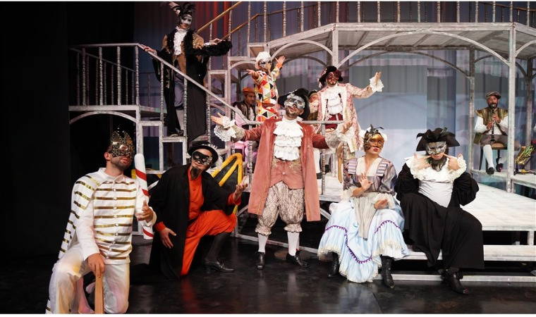 Oyunda Brighella rolünde Ensar Kaplan, Florindo rolünde Bedirhan Arpacı, Lelio rolünde Hazar Altıntaş, Arlecchino rolünde Ahmet Uzuner, Beatrice rolünde Derya Hatipoğlu, Rosaura rolünde Dilan Serinyel, Colombina rolünde Pelin Beğendi, Ottavio rolünde Mahir Elvan, Dottore rolünde Volkan Satır ve Pantalone rolünde Ercan Kılıçarslan sahne alıyor. Selin Karayağız ise çırak, arabacı ve postacı rollerinde izleyici karşısına çıkıyor.
