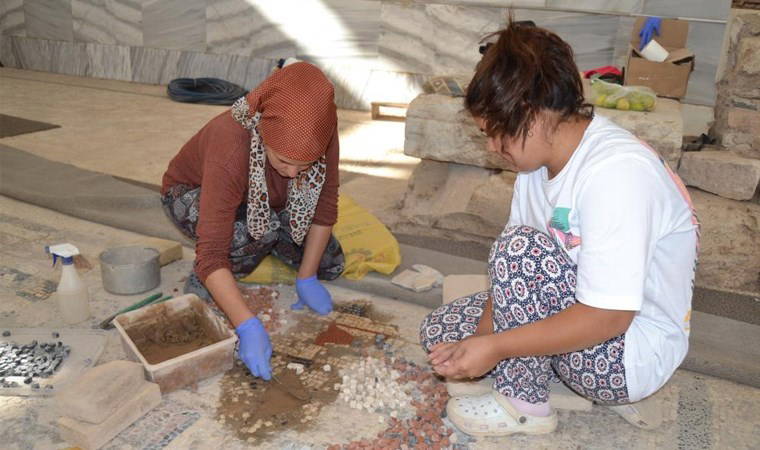 Mozaik restorasyonu çalışmalarında görev alan Sevinç Akçayım ise çalışmalara mahalledeki komşuları ve kızı ile katıldıklarını söyledi. Akçayım “Bu işi severek yapıyoruz. Çünkü tarihe elimiz değiyor. Bu çok farklı bir duygu. Bizler yaşlandığımızda çocuklarımız buraya gelecekler ve bu restorasyonu annelerimiz yaptı diyecekler. Nakış yapar gibi çalışarak tarihi yeniden canlandırıyoruz, diyebilirim” dedi.