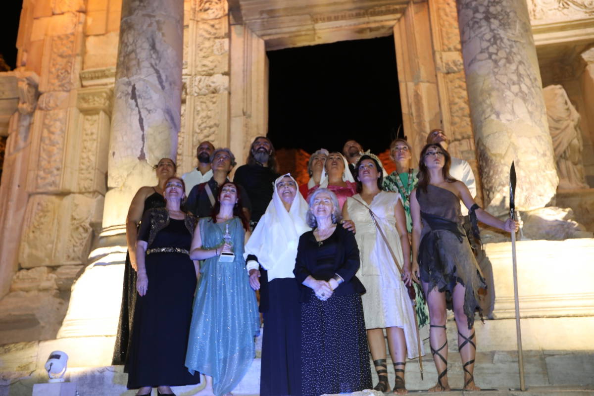 Amazon Kraliçesi Smyrna, Toprak ve Bereket Tanrıçası Kybele, kadınların ve çocukların koruyucusu kabul edilen Tanrıça Artemis, Fatma Ana ve Meryem Ana’nın Celsus Kütüphanesi’nin büyülü atmosferinde anlatılan hikâyelerine müzik ve dans gösterisi de eşlik etti. Oyunda son olarak canlandırılan Mustafa Kemal Atatürk’ün annesi Zübeyde Hanım’ın hikâyesi katılımcıları duygulandırdı.