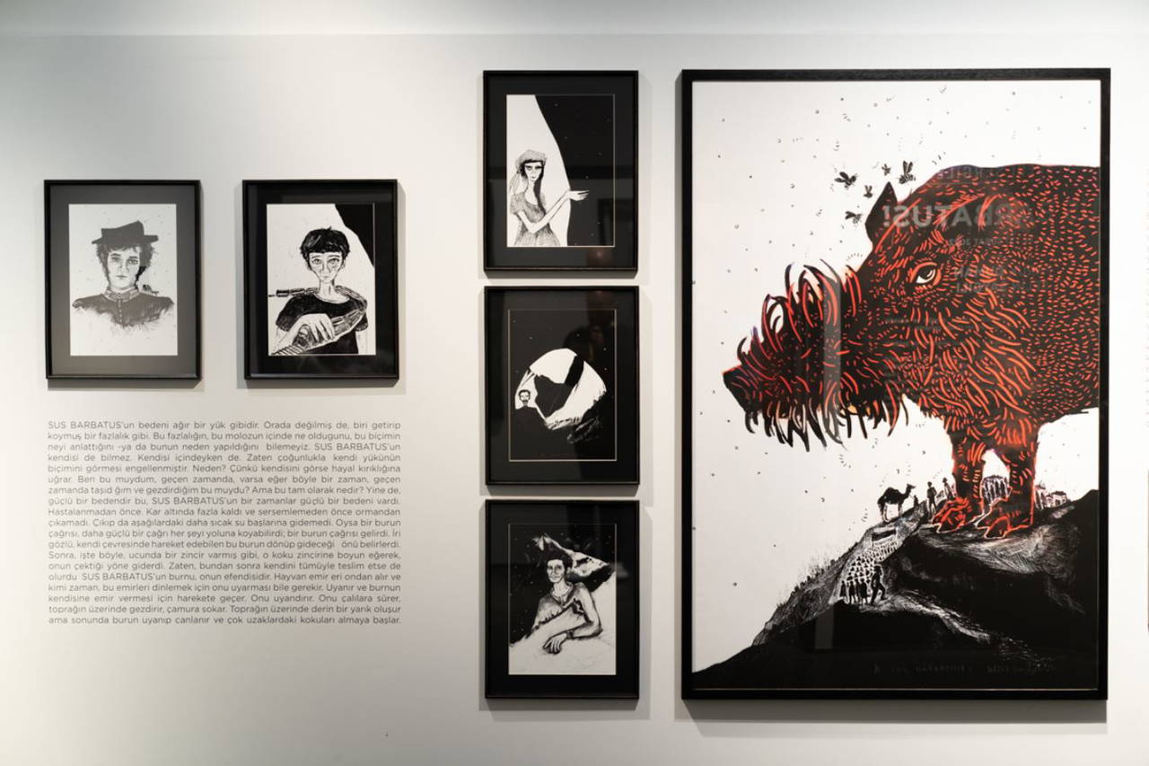 Serginin hikayesini sergideki (ve tabii ki Yapı Kredi Yayınları tarafından basılan Sus Barbatus! üçlemesindeki) kara kalem çizimleri yapan Selin Saygılı’dan dinliyoruz bir de…