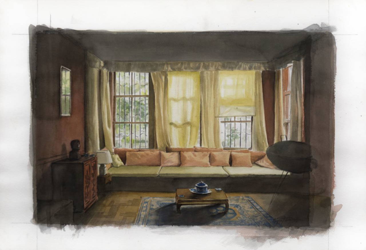 Yalıları, vapurları, iskeleleri ve sürekli değişen bir şehir yaşamı içerisinde gözden kaçan detayları ile “Suya Dökülen Renkler”, özenli bir seçki çerçevesinde boğaz yaşamının kaybolmaya yüz tutmuş unsurlarını suluboyanın etkileyici ışık ve renk oyunlarıyla tekrar gün yüzüne çıkarıyor.