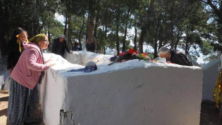 Balıkesir'in Edremit ilçesine bağlı kırsal Tahtakuşlar Mahallesi'ndeki mezarlıkta bir araya gelen Tahtacı Türkmenleri, geçmişi asırlar öncesine dayandığı bilinen Hıdırellez geleneğini sürdürdü.