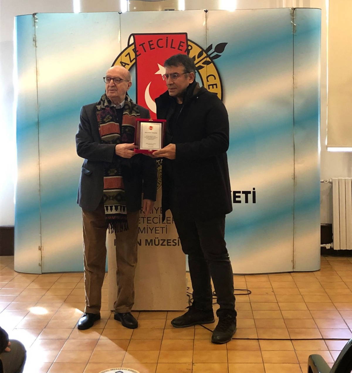 Ahmet Güneştekin’e plaketini Turgay Olcayto sundu.