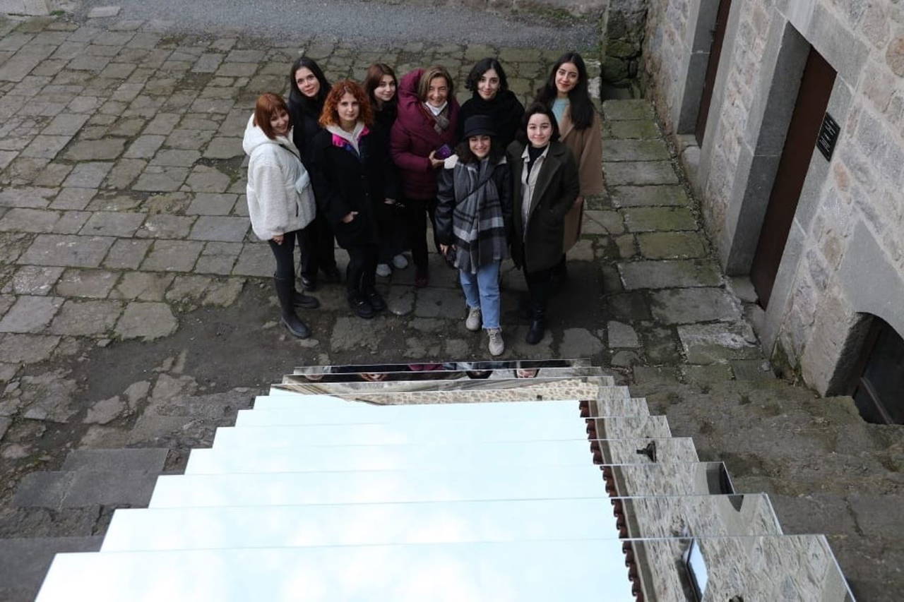“Mina’nın Çocukları” projesi kapsamında düzenlenen “Kolektif ‘Yansıma’” sergisini anlamlı yapan bir diğer nokta ise serginin açıldığı mekân. Kızlar Manastırı 14. yüzyıldan kalma bir ortaçağ yapısı. Tüm Trabzon’a hâkim bir noktada bulunan, iç kısmında şapel ve bazilika, Karadeniz’e bakan yedi tane odası, bazı kısımları mağarayla bütünleştirilmiş etkileyici bir yapı. Zamanla insan eliyle yok edilse de bazı freskler hâlâ görülebiliyor. İçine girdiğiniz anda, özellikle odaların yer aldığı kısımda etkilenmemek, zihninizde bir zaman yolculuğuna çıkmamak imkânsız.