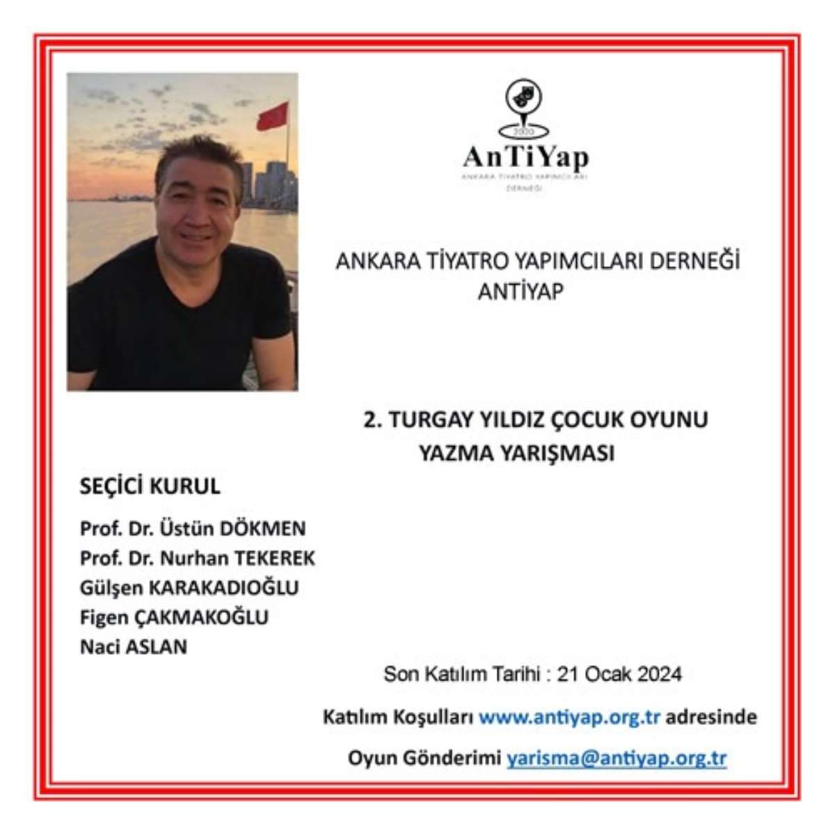 Ankara Tiyatro Yapımcıları Derneği (AnTiYap) Turgay Yıldız Çocuk Oyunu Yazma Yarışması düzenliyor.