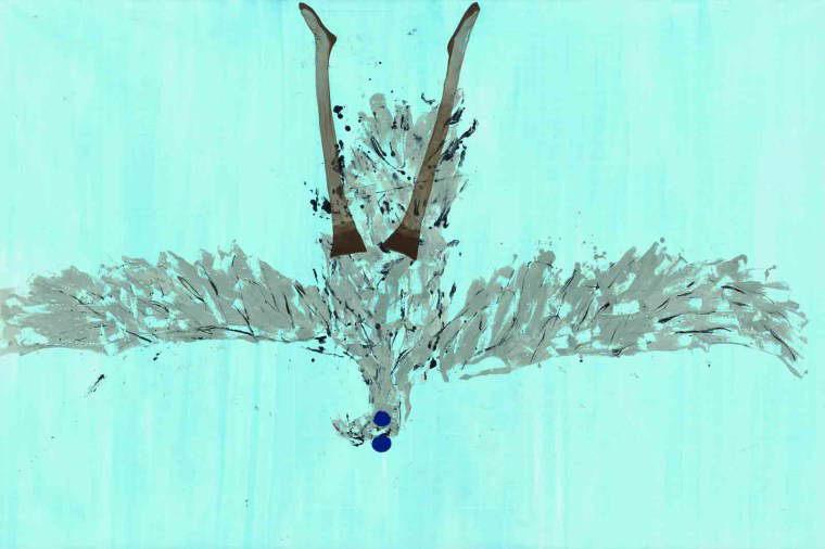 Sergide sanatçının tüm dünyada ilk kez sergilenen, mart ayında yaptığı bir tablosu da yer alıyor. Yine baş aşağı, kanatlarını açmış bir şekilde duran kartal, gökyüzünden avına doğru inişe geçmiş hissi veriyor. Eserin ismi ise esprili: “Seks yapamıyorum.” Sergideki seride dikkati çeken bir başka konu ise sanatçının bir anlamda varoluşsal kaygılarını yansıtan tabloları. 86 yaşındaki ressam, son yıllarda yaşlılıkla, yaşlanmakta olan bedenin düşündürdükleriyle ilgili çizimler yapmaya başlamış. Bu tabloları da sergide kendine yer buluyor.