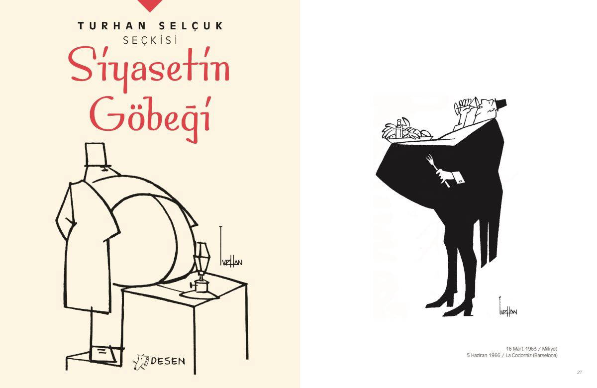 Turhan Selçuk'un, siyasetin göbeğinden seçilmiş karikatürlerinin pek çoğu eski kuşaklar için anı tazeleme işlevi de yapacak. Elbette bağımsız kalkınmış Türkiye yolunu gösteren tabelanın tersine işçinin sırtına binmiş, gözlerini kapatmış göbeklinin yürüyüşü… Altında “Hal ve Gidiş Sıfır” satırı ile anlatılmış olacak. Gardarop Atatürkçüleri ile Banknot Atatürkçüleri, aynı göbekliler içinden, farklı tarihlerin gündemlerinin başlıkları ile bağlantılı olarak çıkacak.