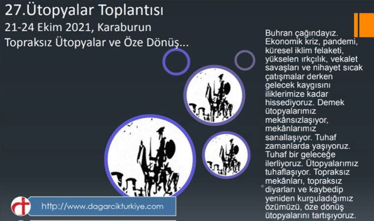 Topraksız Ütopyalar ve Öze Dönüş teması ile düzenlenecek 27. Ütopyalar Toplantısına bu yıl Karaburun ev sahipliği yapacak. 21-24 Ekim tarihleri arasında gerçekleşecek toplantıya katılmak için tek yapmanız gereken sırt çantanıza ütopyalarınızı koyup yola koyulmak.