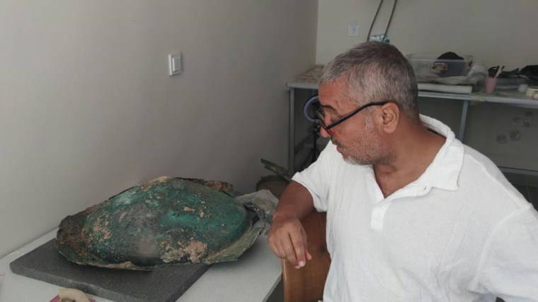 Oda üzeri bezemeli törensel bir miğfer olduğunu tahmin ediyoruz. Çünkü bazı bezemeleri şuan yakalayabiliyoruz tabi bu süslemeler ve bezemeler kapsamalı bir restorasyon ve konservasyondan sonra güzel bir şekilde karşımıza çıkacak. Hepsi bunların aslında bir kraliyet, bir dini elit grubunun o alanı kullandığına dair çok güçlü kanıtlar olarak karşımıza çıkıyor. Bunların burada olması biliyorsunuz aslında Ayanis kaleleri 36 yıllık kazılar neticesinde bronz eserler, özellikle bronz silahlar konusunda çok zengin bir repertuar sundu” dedi.