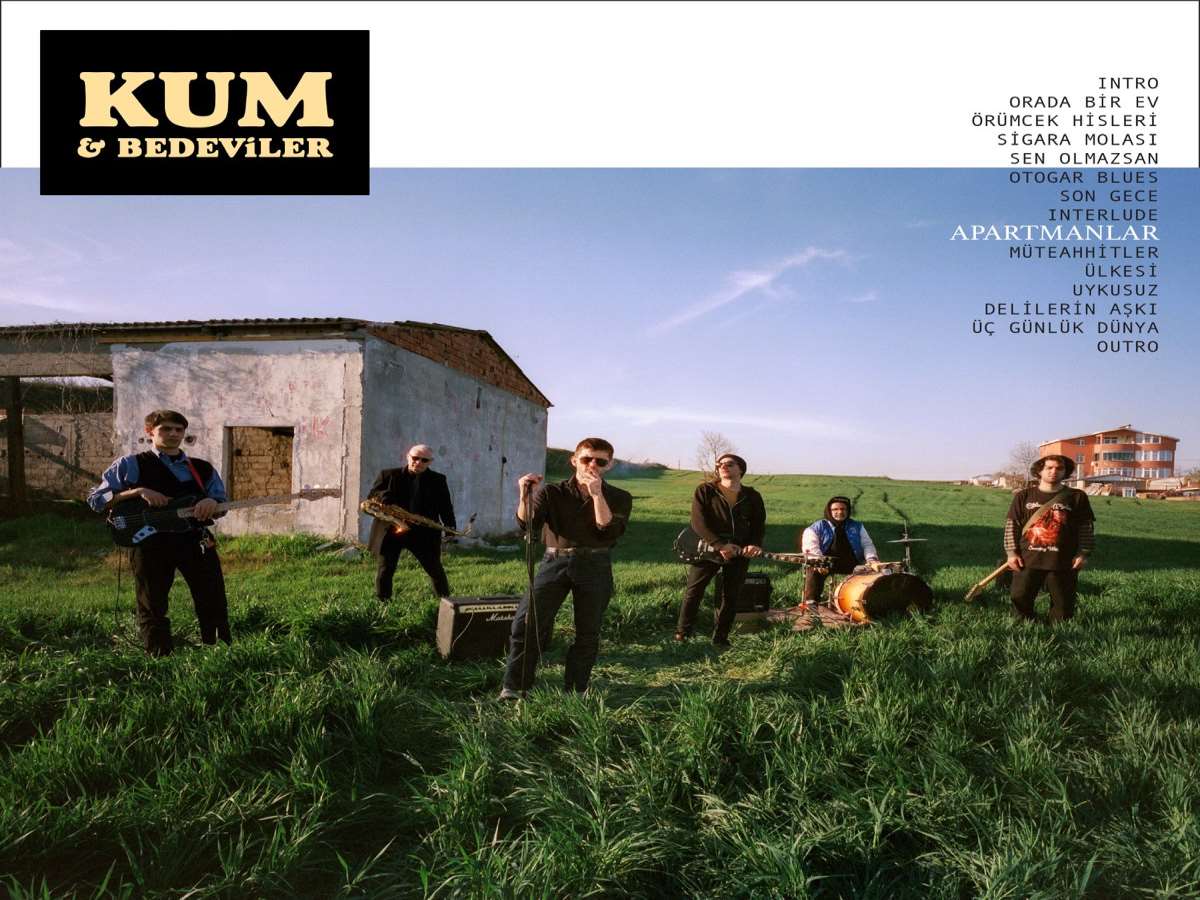 Burkut Kum bir dönem İngiltere’de yaşamış, hayranı olduğu (The Fall’un lideri) Mark E. Smith gibi serseri görünümlü bir duygusal. İlk albümünü Kum adıyla çıkarmıştı. Şimdi arkasında gitarlarda Luca Fritz ile Alper Ekiz, basta Denzi ve davulda Orkun Tunç’tan oluşan Bedeviler topluluğu var. Bir de “Apartmanlar” albümü.