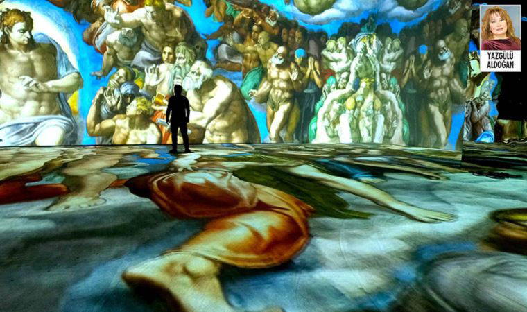 Anlamanız gerekmiyor aslında. En azından sizinle birlikte gelen çocukların. Duygularını özgür bırakıp hissetmeleri yeter. Bir anda Mona Lisa’nın gözleriyle karşılaşıyorsunuz bir duvar boyutunda! Louvre Müzesi’nde görmüş olabilirsiniz ama kalabalığın ve biraz daha ileri gitmek için sizi itenlerin arasından birkaç dakika, burada üzerine bile basabilirsiniz, çünkü yerde gökte, duvarda, her tarafta. Ben Paris’te gezdiğim Romantik ressamlar sergisinde yerlere yatıp tavana bakarak uzun rüyalara dalmıştım; burada gazeteci kimliğimle biraz kastığım için dans filan edemedim; ama eminim ki çocuklar o müziğin ritmine dayanamayacak! İlk yarı daha çok resim, ikinci yarı daha çok dijital çizgiler. Üç ay sonrakinde bizim sanatçılarımızın da olmasını heyecanla bekliyorum. Türkiye için çok büyük bir atılım, bu sergiyi Paris’te gezebilmek için gitmeden önce bilet almıştım, öylesine doluydu. Zaten Muzaffer Bey de bundan önce çok daha küçük bir alanda yaptıkları benzer bir sergiye 64 bin izleyici geldiğini duyunca kesenin ağzını açmış! Müze dün açıldı. Bugün rezervasyon yaptırmayı başarırsanız ücretsiz. Sonrası biletler Mobilet’te, 99 TL. Aile ve öğrenci indirimleri var.