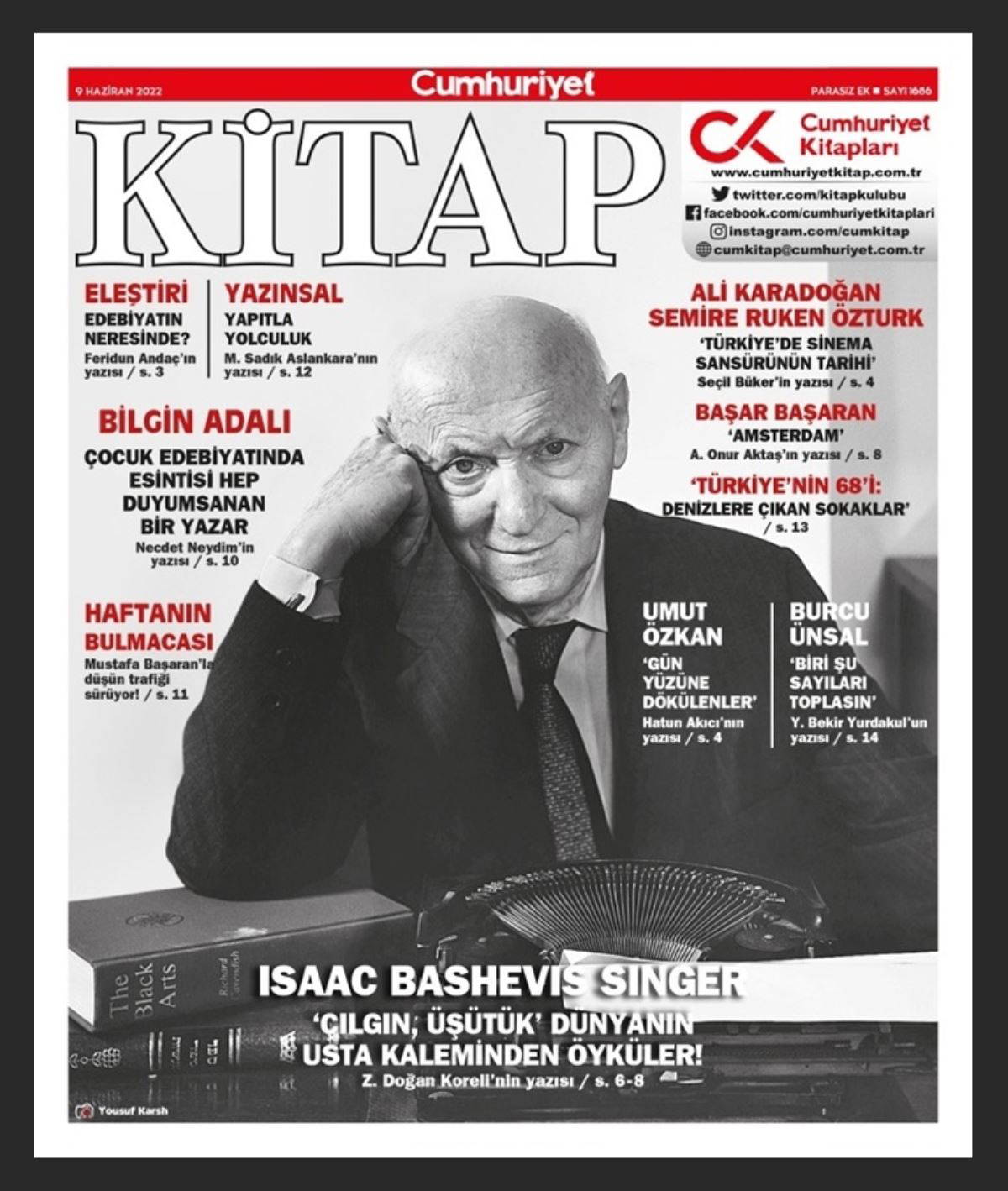 - Yapıtlarında bireyi merkeze koyarak kırıma uğrayan bir toplumu anlatan, Holokost zamanının gölgesinde büyümüş ve milyonlarca sivilin toplu katliamlarına Yidiş dilinde yazdıklarıyla başkaldırmış, Yidiş edebiyatı dendiğinde akla gelen ilk isimlerden Nobel Edebiyat Ödüllü Isaac Bashevis Singer, üç cilt olarak yayımlanan toplu öyküleriyle (Son İblis / Bir Dans, Bir Sıçrayış / Ay ve Delilik) kapağımızda. Z. Doğan Koreli’nin yazısı…