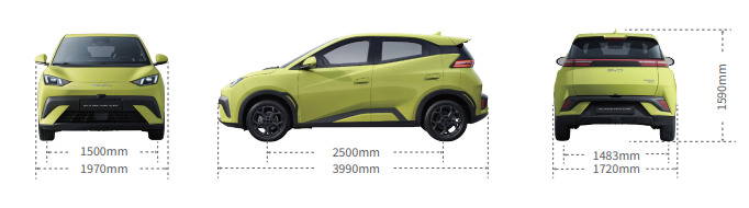 Seagull: 3780/1715/1540 mm, dingil mesafesi 2500 mm