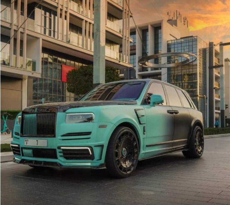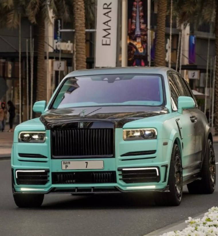 2023 yılında bir müzayedede 55 milyon AED'ye (4 milyar 653 milyon TL) mal olan 'P 7' plaka, özel yapım turkuaz Rolls Royce'un üzerinde görüldü.