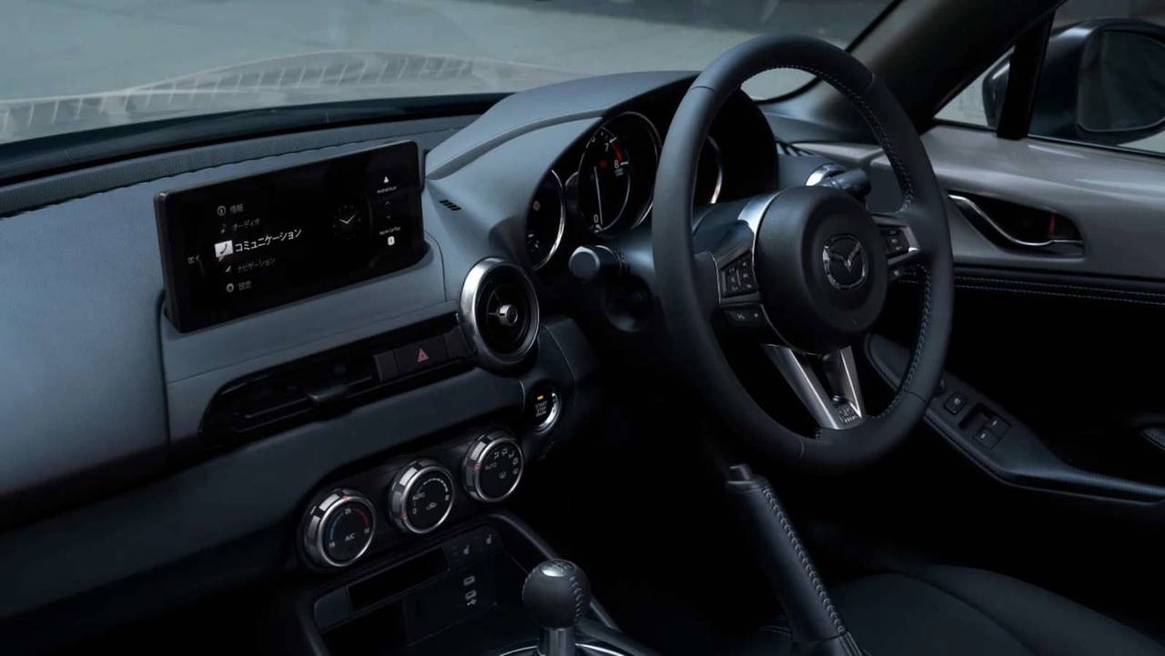 Kabinde, yalnızca orta konsoldaki döner kadranla çalıştırılan eski yedi inçlik ekranın yerini alan daha büyük bir 8,8 inç dokunmatik ekran bulunuyor. Apple CarPlay bağlantısı devam ediyor, ancak artık daha yeni bir bilgi-eğlence sistemi yerleştirilmiş. Çerçevesiz bir dikiz aynası ve USB-C şarj portları da 2024 Mazda MX-5'te dikkat çekenler arasında yer alıyor.
