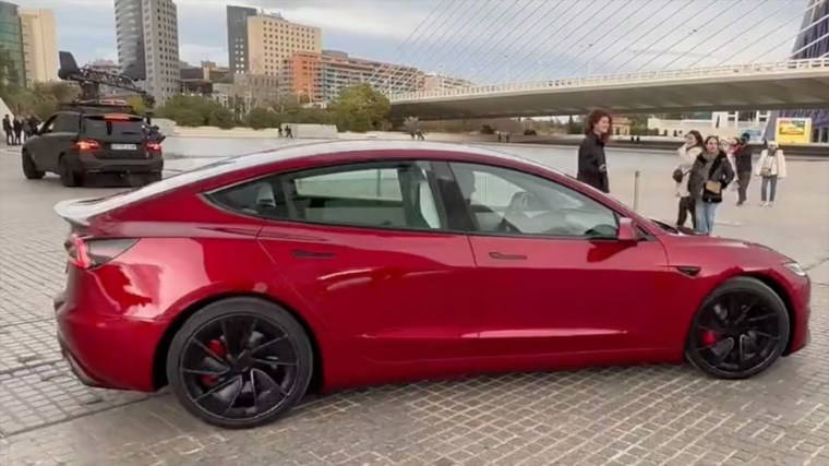 Şimdi de yeni bir Model 3 Performance, İspanya'nın Valencia kentinde yapılan bir tanıtım videosu çekiminde ilk kez kamuflajsız olarak görüntülendi.