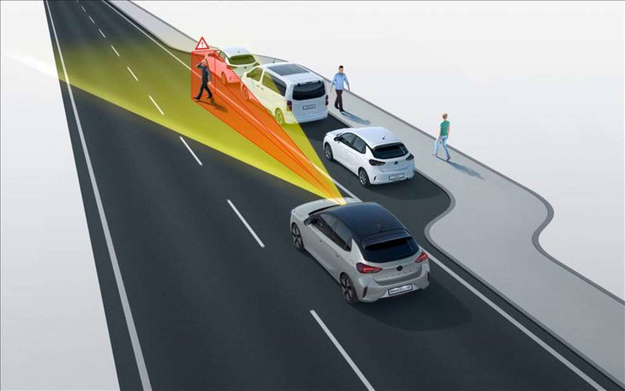 Yeni Opel Corsa'da ayrıca kamera tabanlı yaya algılama özellikli aktif acil fren sistemi (acil durum freni ve ön çarpışma ikazı) sunuluyor. Kamera tabanlı sistem, 5-85 km/s arasındaki hızlarda çalışıyor. Öndeki bir araca veya yayaya çok hızlı yaklaşılırsa, sesli bir uyarı veriyor ve sürücü bilgi ekranında bir mesaj beliriyor. Çarpışma yaklaştığında ise sistem frenleri hazırlıyor ve gerekirse, olası bir çarpışmayı önlemek veya etkilerini en aza indirmek için acil fren uyguluyor.