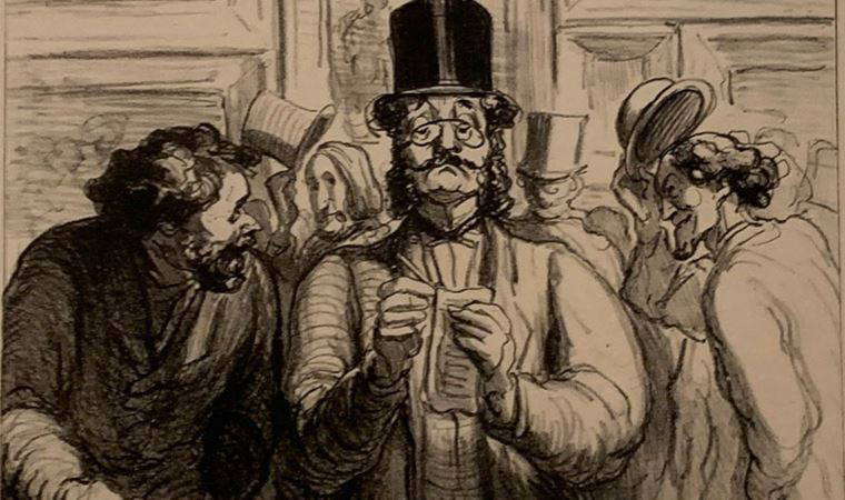 Fransız Ressam Edouard Manet’in, Olympia (1863) resmiyle başlayan yerleşik sanatı sorgulama hâlâ devam ediyor. Manet tablosunda hayat kadını olduğu izlenimi uyandıran çıplak bir kadını yatağa uzanmış şekilde resmetmiş ve sergilendiğinde büyük tepki çekmişti. 1910’a kadar sadece basının eleştirileri ya da Fransa ve Belçika’da resim sergilerinin parodilerinin yapıldığı gölge sergilerle sanat hicvediliyordu. Dadaizm ve sonrasında sürrealizm ile artık sanatçılar da sanatı yapıtlarıyla yermeye başladılar. Amacım sanat tarihi dersi verip sizleri sıkmak değil. Sergideki her bir yapıt sayfalarca anlatılacak bir geçmişe ve etkiye sahip. Size birkaç örnek... Etraftakilere tepeden bakan bir eleştirmenin çevresinde göze girmek için uğraşanları ve onu pohpohlayan sanatçıları yeren Honoré Daumier’in 1865’te yayımlanan “La Promenade du Critique influent” karikatürü hâlâ geçerli.