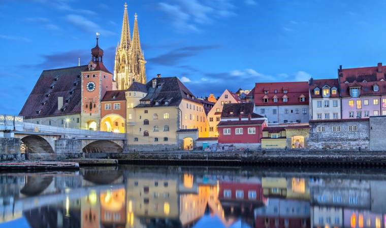 Daha ötelerde, sisler arasında kilise kuleleri, tarihi yapılar, eski taş evler. Regensburg, 2000 yıllık bir kent. Taş köprüleriyle ve yapılarıyla, alanlarıyla, sokaklarıyla, buralarda yaşayan rahat, cana yakın insanlarıyla... Tarih ve gelenek adım başında, kiliselerin Gotik kulelerinde, evlerin taş kemerlerinde, daracık sokakların taşlarında.