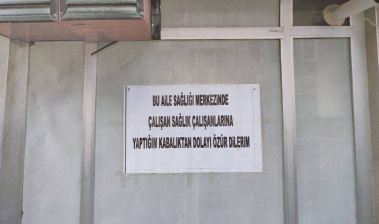 Bir metre uzunluğunda ve bir metre genişliğindeki beyaz kağıda ifadeleri yazan şüpheli, özür yazısını sağlık merkezinin kapısına astı. Sağlık merkezinin kapısında asılı yazıyı gören hastalar kısa süreli şaşkınlık yaşadılar.