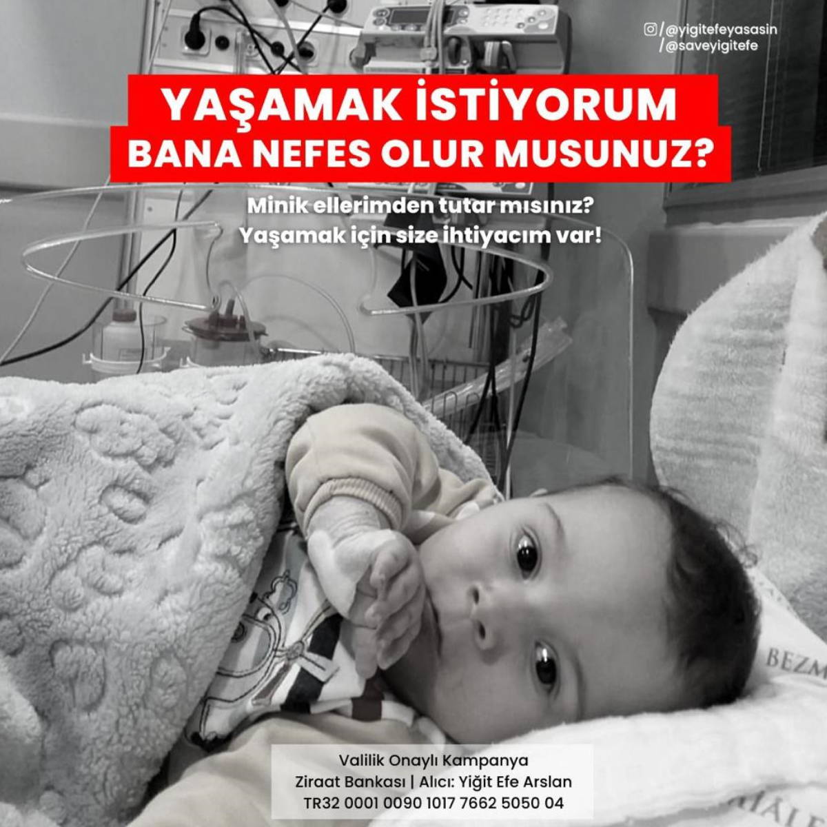 16 aylık Yiğit Efe Arslan SMA TIP1 İlerleyici Ölümcül Kas Hastalığı ile mücadele eden bir bebektir. Yiğit Efe'ye teşhis 2022 yılının Mart ayında konulmuştur ve o tarihten beri ailesi çocuklarını yaşatmak için mücadele veriyor.