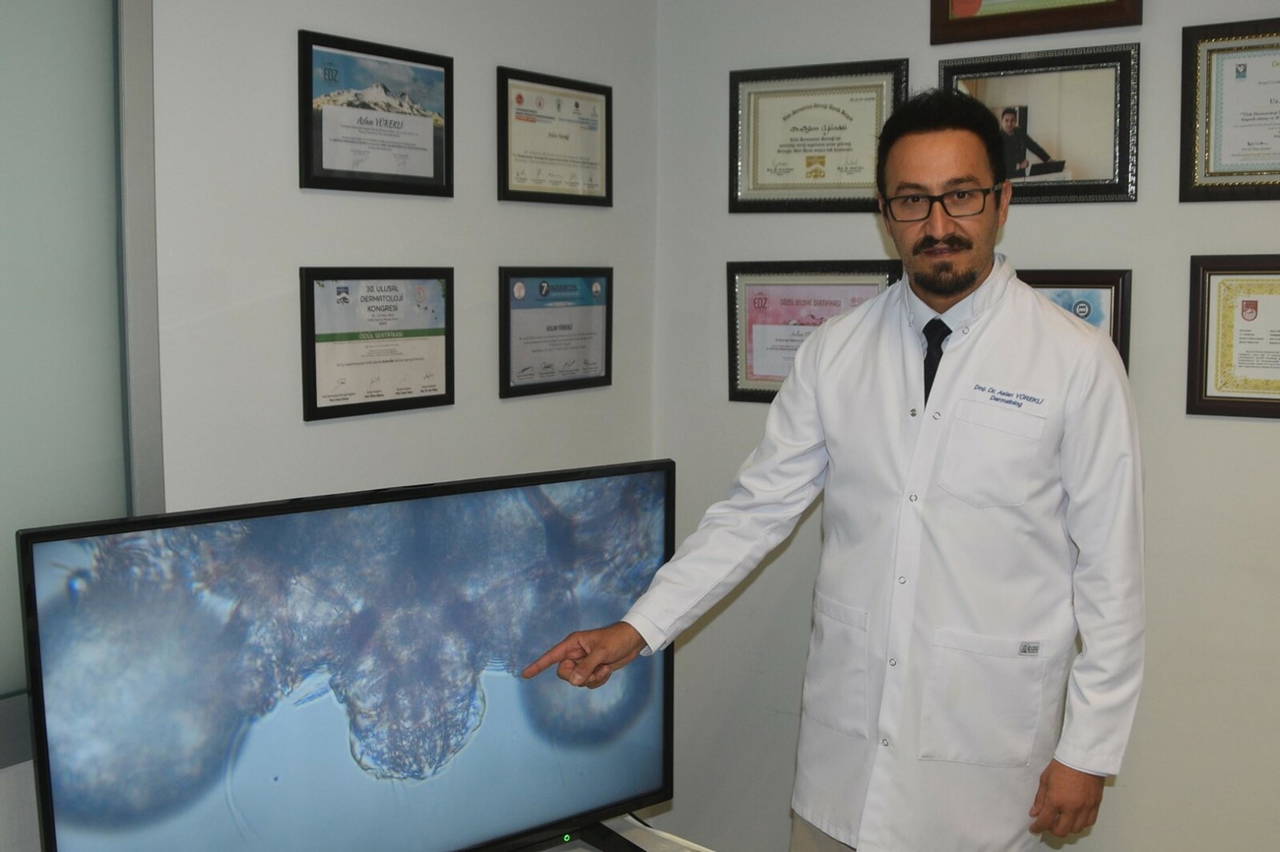 Uyuz hastalığında kolay bir tedavi sürecinin başladığını belirten Doç. Dr. Yürekli, "Uyuz hastalığı aslında toplu iğne başından daha küçük bir parazitin sebep olduğu kaşıntılı bir hastalıktır. Hastalar özellikle gece sıcakta artan kaşıntılardan çok muzdaripler. Bu parazitin ismi 'Sarcoptes scabiei var hominis' karışık bir ismi var gibi gözükse de mikroskop görüntüsüne baktığımızda elleri, ayakları, ağzı ve uzuvları olan küçük bir parazitten bahsediyoruz. Neredeyse bir keneyi andırıyor. Bu parazit insan vücuduna yerleştikten sonra hemen tünel kazmaya başlıyor. Oraya bir yuva inşa etmeye çalışıyor. Yuvasını inşa ediyor, yumurtalarını bırakıyor, çoğalıyor ve tedavi edilmedikçe sayısı artıyor. Hastada dayanılmaz bir kaşıntıya sebep oluyor. Bizler bu tünelleri görerek tanıyı koyuyoruz. Amacımız hastada bu tünelleri yok etmek oluyor" dedi.