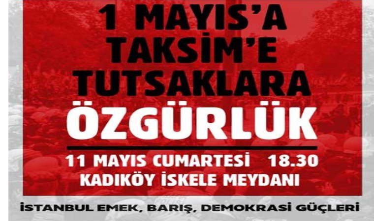 İstanbul Emek, Barış, Demokrasi Güçleri, Taksim Meydanı’na yönelik yasağı ve tutuklamaları protesto etmek için bir eylem çağrısı yaptı. 11 Mayıs Cumartesi saat 18.30’da Kadıköy İskele Meydanı’nda “1 Mayıs’a, Taksim’e, tutsaklara özgürlük” başlığıyla bir eylem yapılacak.